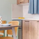 Nogle enheder omfatter også et køleskab og køkkenudstyr.